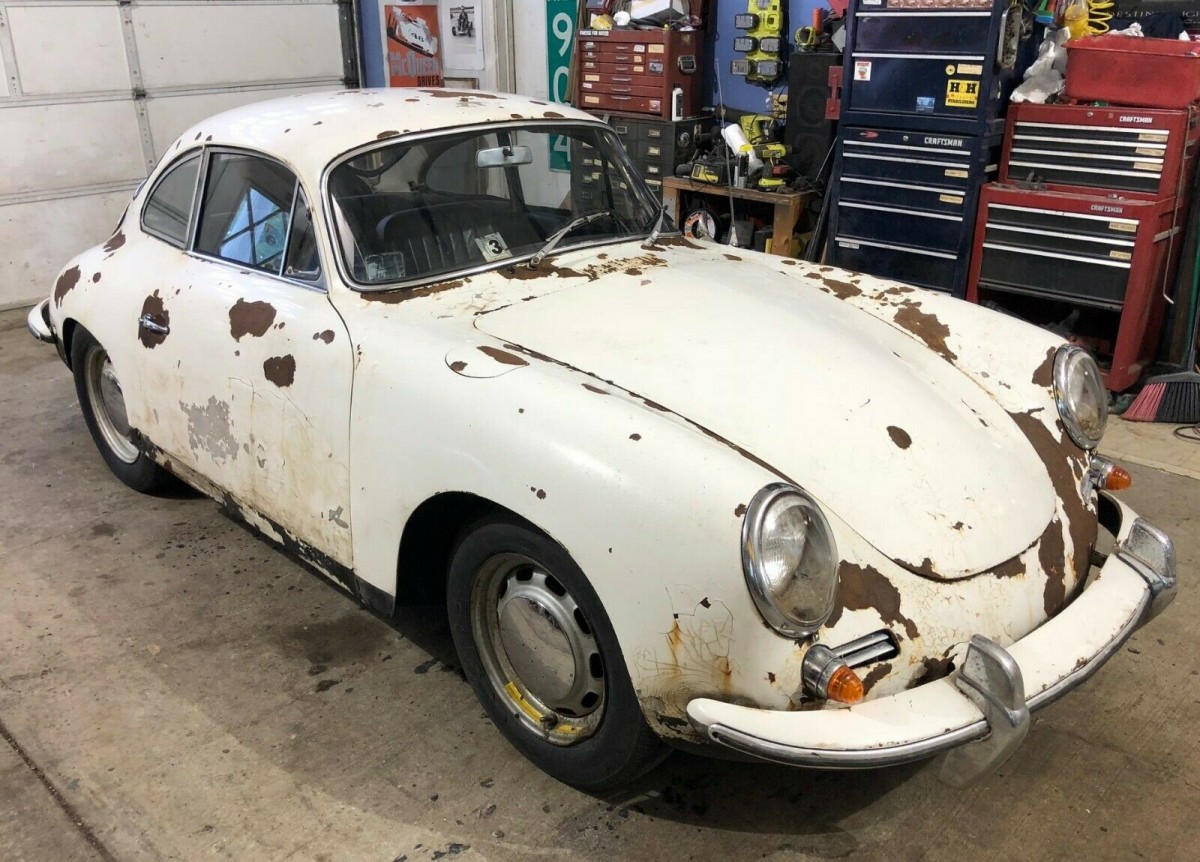 Imagine seeing a barn find Porsche 356 pop up in your own backyard – and never even catch a whiff of it? That’s how I’m feeling about this 1964 Porsche 356, which was apparently discovered in Rhode Island by well-known air-cooled sleuth Unobtanium, Inc. You’ll find the Light Ivory 356 here on eBay in nicely preserved condition, with a complete interior and drivetrain but obviously in need of restoration. Bidding is just under $20K with no reserve.