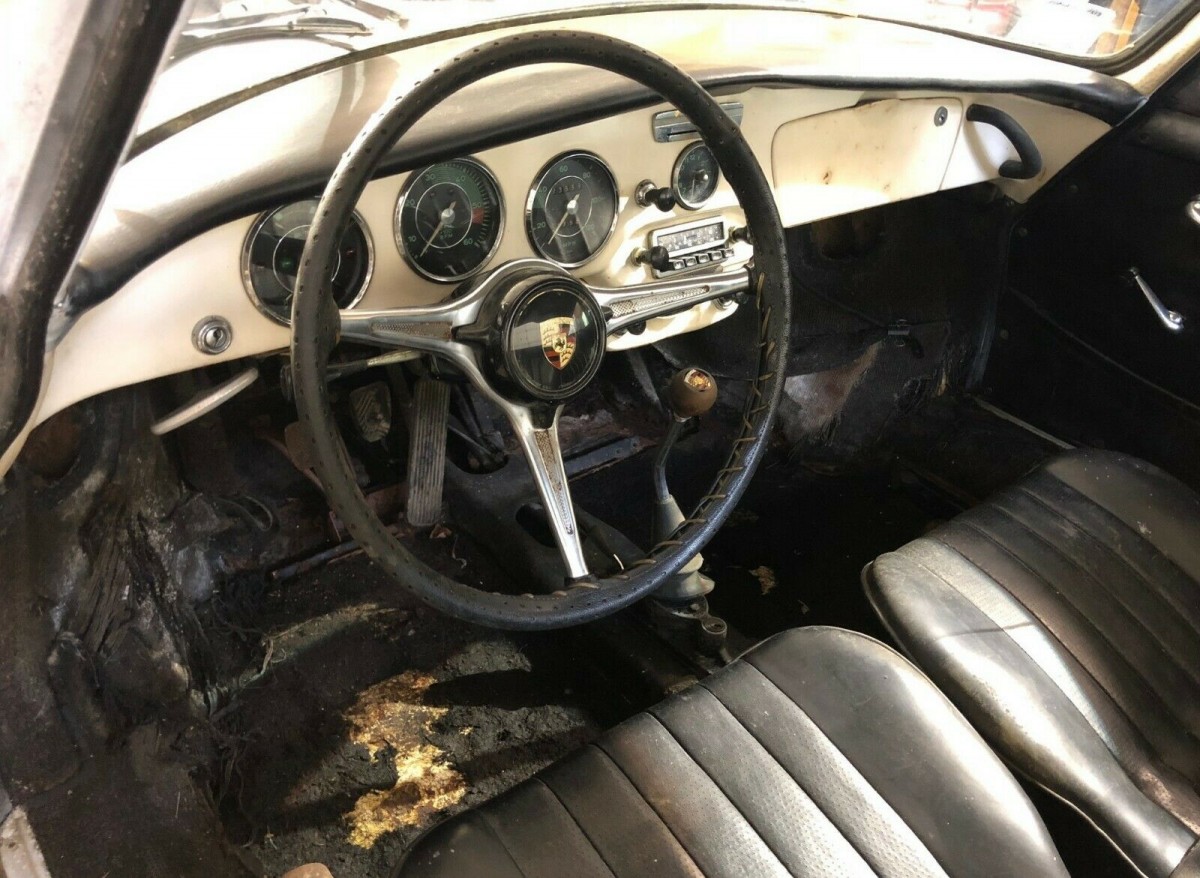 The seller notes the interior is still in respectable and very complete condition, and the 356 will come with records going back to 1966. However, photos do show plenty of typical 356 floor rot, so plan on replacing the entire pan or at least large sections of floor panels before driving. At least the interior is a fine place to spend time while that cosmetic work is being done.