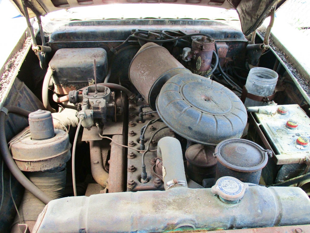 Under the hood is a big Packard straight-eight. It’s a 359 cui engine to be exact and was good for 212 horsepower. Things look to be fairly clean under the hood, but it’s hard to say what all the engine is going to need. At least it’s complete!