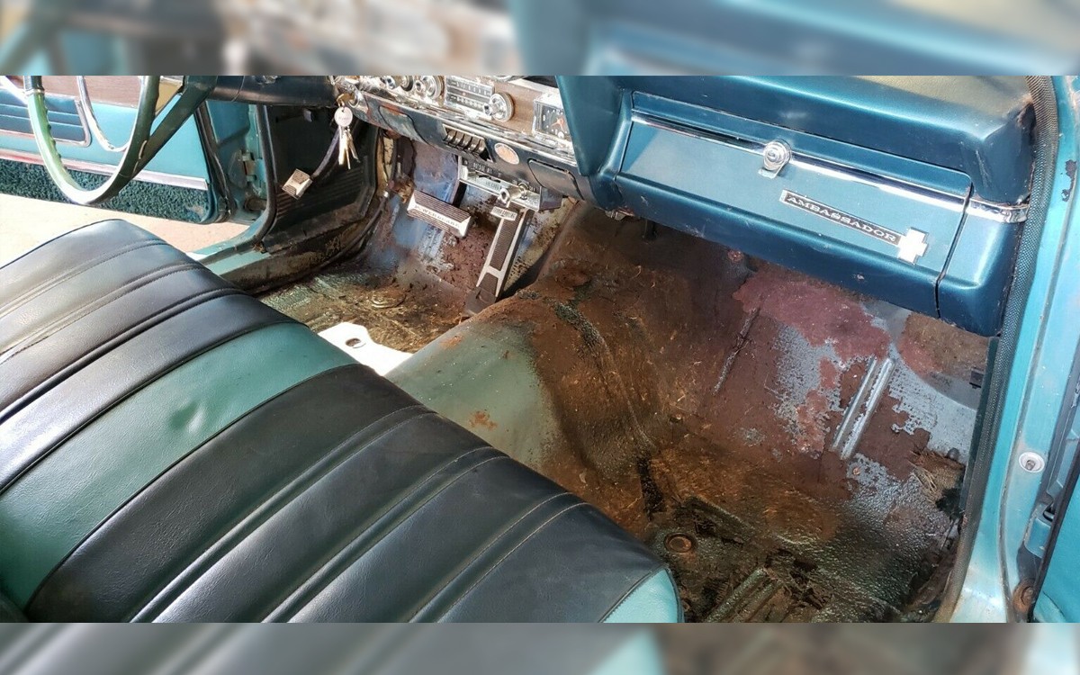 The driver’s side has an off-color driver’s door and/or rear passenger door but otherwise, it looks like an original car. The seller tells us a pretty incredible story about this one. Apparently, the previous owner used this Ambassador Cross Country wagon for daily duty until they got called up for the Vietnam war, so it was parked in 1972. Thankfully, the owner made it back but the car sat after he bought a new car upon his return from overseas. It lingered in the barn until the seller bought it, about five decades later.