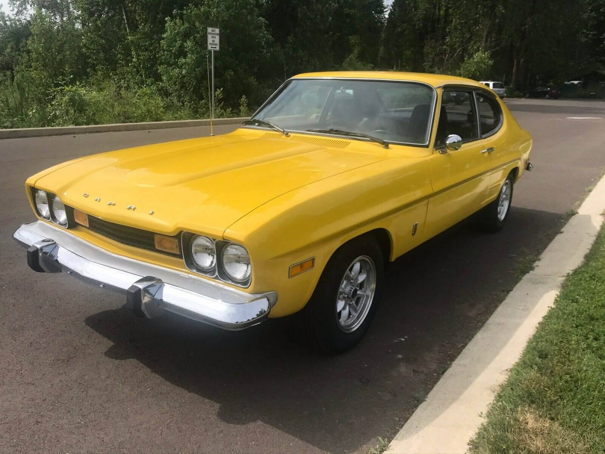 Had to write in. My second car was a 76 Capri that I bought for $1200.00 in 1987 in the exact color, and I loved it. They were a bit bigger and longer than the 73/74 models. It had a V6 that ran like it was brand new. Holley 4 barrel and Offenhauser intake. It would scoot! The previous owner(young guy named John) raised it up, and put hurricane rims on it and white letter tires. I LOVED that car. Miss it to this day.