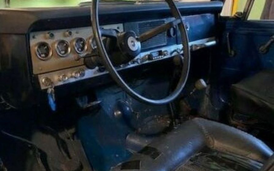 On the surface, this old-school SUV appears to be fair but it comes with quite a few exceptions. First up, the finish is burned off of the horizontal surfaces and it’s missing both bumpers. The listing claims, “Frame is solid front to back, front floors were patched, some metal welded in on the body and inside front fender wells“. The glass is stated as being good with the manual windows working as intended and they are complete with new weather stripping for both the doors and tailgate. While this Scout’s exterior presentation exudes lots of outside time, that dreaded “P” word is not once mentioned, and that being the case, I will gladly refrain from uttering it as well. Actually, the very faded blue and white finish portrays a vision of a mail delivery truck but I doubt that was ever this Scout’s calling in life.