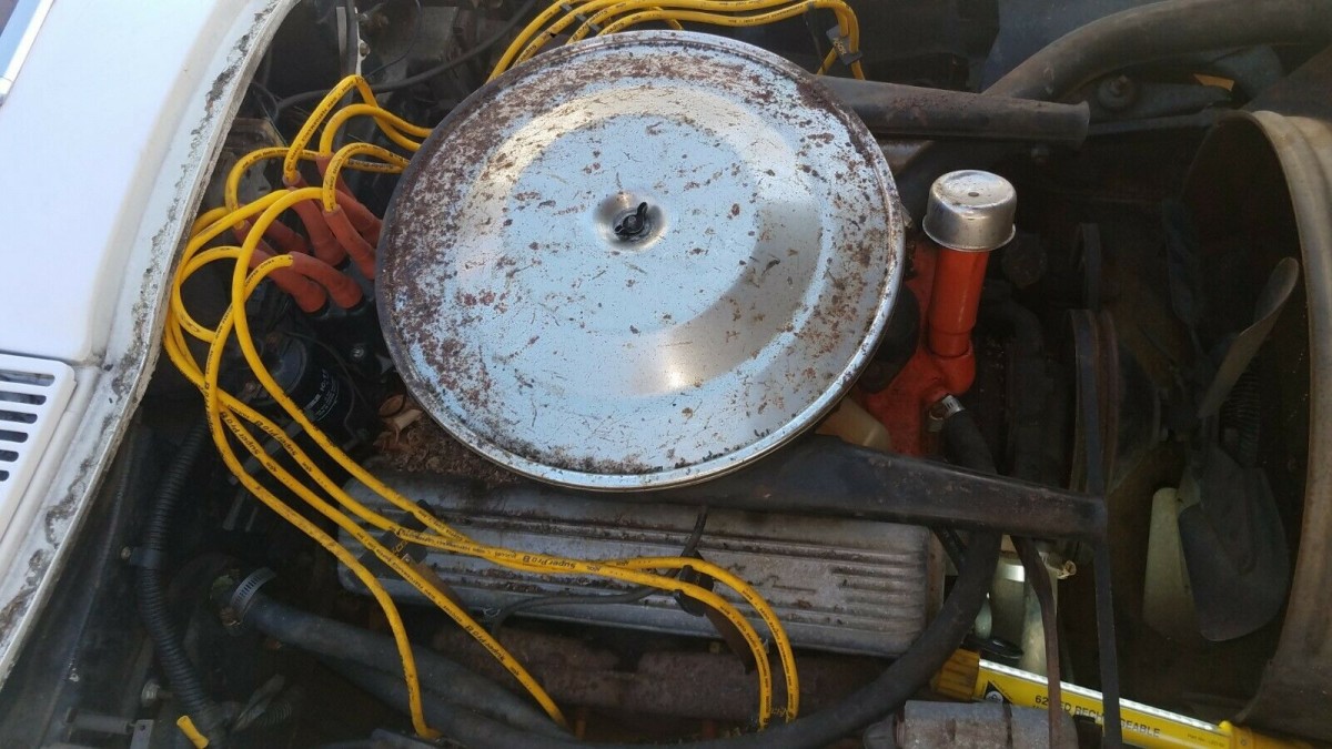 The photos of the Corvette leave a bit to be desired, but they do help us to get an overview of the car. The car has been parked in dry storage for 18-years, so it will be interesting to see how it has survived its hibernation. The picture that the photos paint seems to be reasonable, and while the Ermine White paint is definitely well past its best, the body appears to be quite reasonable. I can’t see any stress cracks or fatigue in the fiberglass, and the owner states that the car has never had a hit. The frame has a solid coating of surface corrosion, but the owner doesn’t mention any specific rust issues. What he does mention is the fact that the frame has received a repair on the bottom near the kick-up. He does provide a photo of it, and it looks solid, if a little bit “agricultural.” The next owner may choose to leave it as-is, but they might also choose to have this redone. It will be dependent on what a personal inspection reveals, and the next owner’s personal feelings when it comes to perfection. All of the external trim and chrome is present, and while it is all pretty dusty, I suspect that it will polish up quite well. All of the glass is present, and there are no obvious signs of cracks or chips.