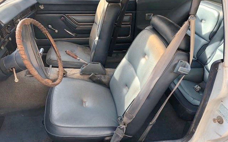 Other than a dent on the left side, this Pinto cousin looks pretty nice. I’m hoping that the seller has the missing right-front wheel to match the others but there’s no mention of it in the listing. They do mention that there are four new whitewall tires that go with the sale. I don’t see any rust at all and there’s no mention of rust. 1975 was the first year for the Mercury Bobcat in the US but it appeared in Canada a year earlier.