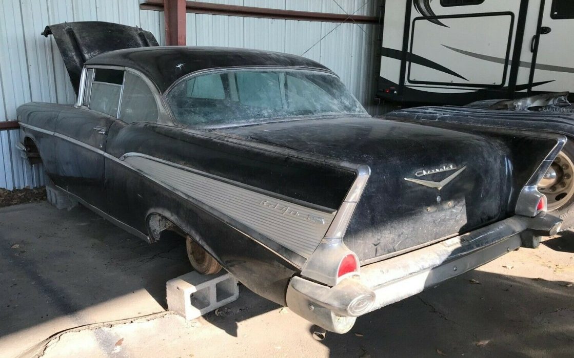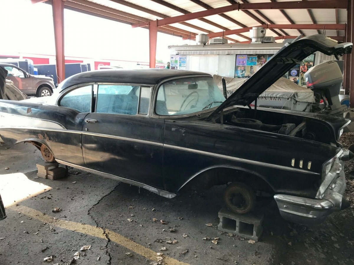 I have a 57 Pontiac Chieftain 2 Dr Hardtop and many of the parts are interchangeable with a 57 Chevy like this. Note the two speed electric wipers(an option instead of vacuum). Identical to Pontiac. When I changed my windshield to Soft Ray tinted many years ago,it came from a 57 Chevy. Same with the window regulators and the flap that opens and closes with the door to seal the top of the door windows. I believe the doors and decklid would also fit a Pontiac. The hood has the same measurements and could probably be adapted, but would look strange. On this Chevrolet, I would consider the four-speed for two reasons;one, there is already a big hole in the floor and 2 it would then have synchromesh on all gears. I changed my 64 Corvette from a 3 speed to a 4 speed for this very reason- no synchro on first gear It was a real bear in traffic with the 3 speed, but is delightful with the 4 speed. I would refresh the engine on this car, but no real mods except maybe to option it out ,redo the interior, paint and original style whitewall tires WITH the factory wheel covers. Put the radio back in the dash and hide a sound system (in my Pontiac,it fits nicely in the glove box). Most important, don’t overdo the paint. In 57, GM metallics were Acrylic Lacquer, no clearcoat. Do it right and you’ll have a survivor driver.