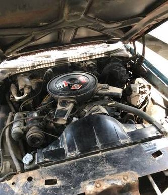 Other than being grimy, it looks all original and in good condition under the hood. There’s none of the usual goofy stuff like aftermarket valve covers or breather. The owner reports that he has had the engine running. This is the standard 400 cu. in. engine. Even though compression this year was decreased to 8.2:1, these engines still had plenty of get up and go. I know because I once owned one.