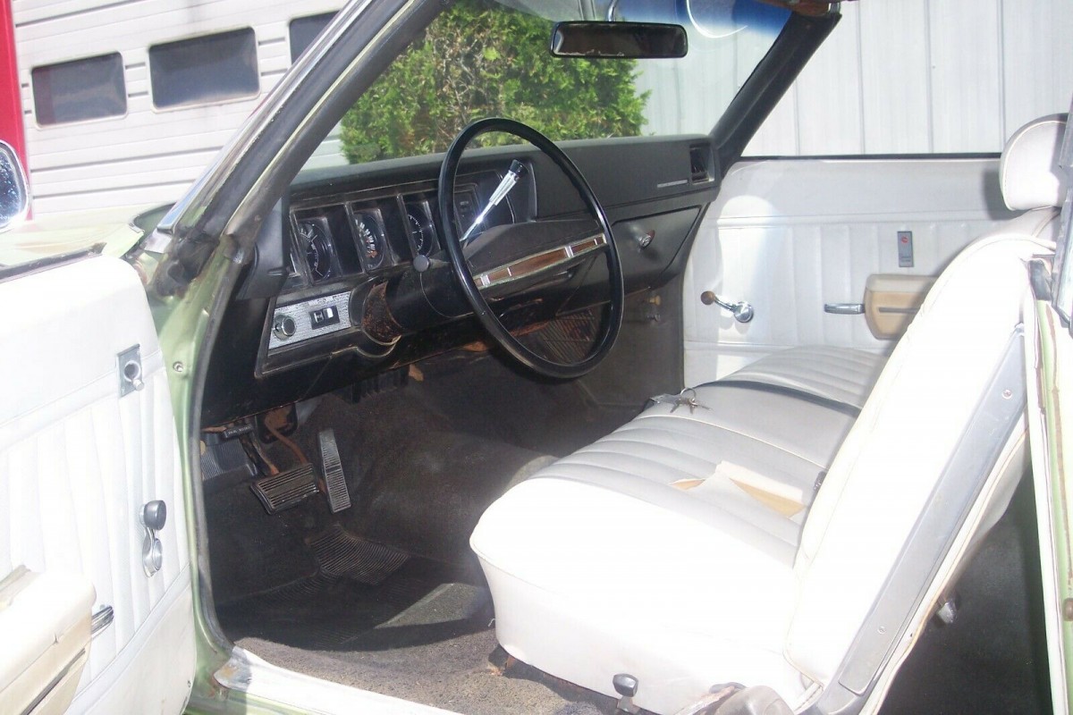 The combination of Seamist Green with the white power top suits the Skylark rather nicely. Looking the car over seems to reveal a vehicle that is in fairly good condition. External rust doesn’t appear to be a real problem, with the only obvious issues being a spot under the driver’s seat and an area in the trunk. There is a possibility that the trunk pan might be able to be cleaned, patched and painted, but replacement would probably be a better long-term solution. The owner says that the power top works as it should, and the chrome and glass all look to be in good condition.