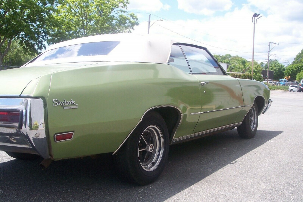 Got a ’71 Skylark convertible for free in ’89, some minor mechanical work and new top and it was back on the road. Mine was brown with tan top and interior and serious rust issues, but the 350 automatic drivetrain moved it down the road quickly. I remember hearing an odd clanking from the rear end, expected he worst when I crawled under it, but found that the lug wrench was sticking through a rust hole in the trunk and was rubbing against the back of the right rear wheel. If only we were always so lucky! Sold it for a grand in ’95 when I found a $300 ’73 Fiat 124 Spider, also a rust bucket. Some of us never learn!