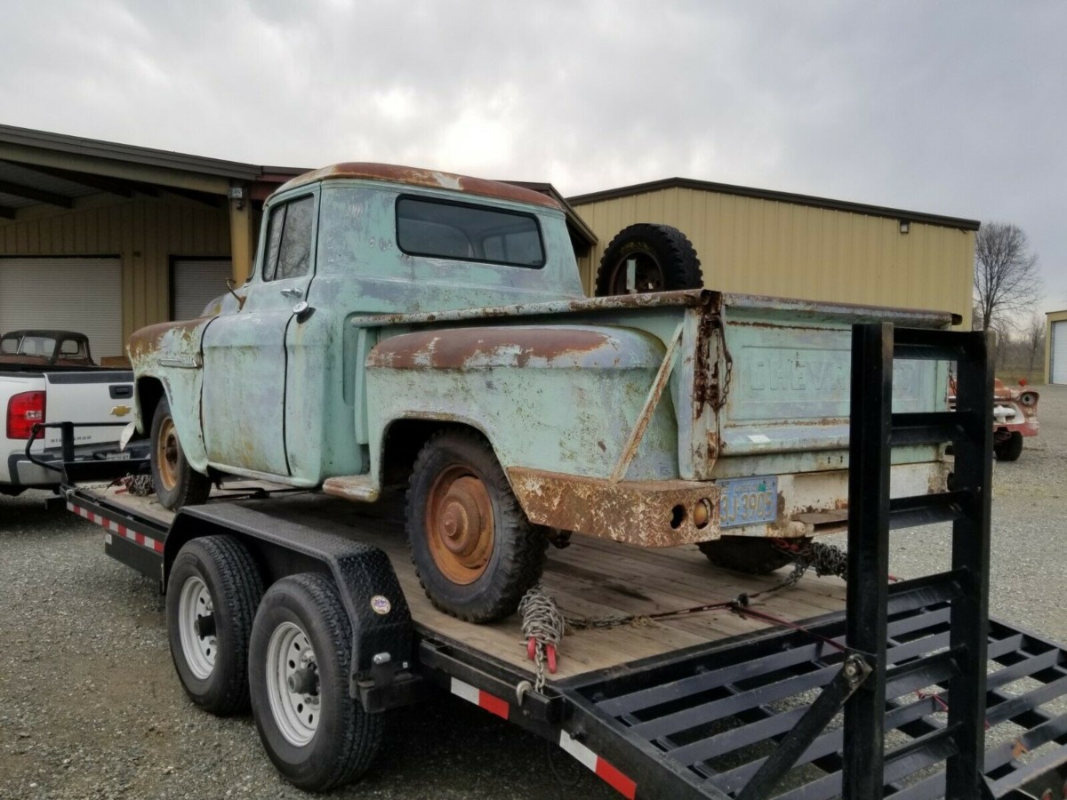 We bought a 57 with the original drivetrain in it. Truck looks near perfect inside and out, but it was kind of hard to drive except for around town. So we are currently updating it to a 350 with a 5 speed transmission, power disk brakes, AC and a fuel tank under the bed instead of behind the seat. I believe it will be quite a nice driver as soon as it is complete… hopefully next week.