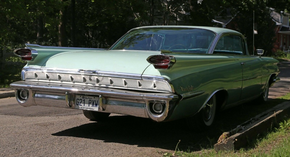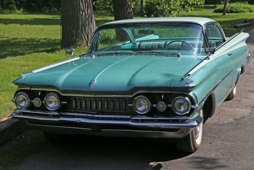 When the owner of this 1959 Oldsmobile Ninety-Eight Holiday SceniCoupe dragged it out of the barn that it had been sitting in for the past 30-years, his aim was to get the car running and driving again without disturbing the vehicle’s overall originality. It appears as though he has achieved this aim. Now that the car runs and drives perfectly again, he has decided to pass it on to the next owner to enjoy. Barn Finder local_sheriff referred the Ninety-Eight to us, so thank you so much for that local_sheriff. This amazing looking car is located in Quebec City, Quebec, Canada, and is listed for sale here on eBay. The auction has been set to open at $13,000, but there have been no bids up to this point.