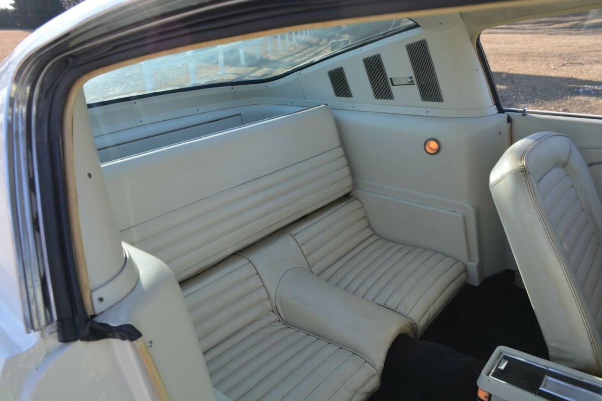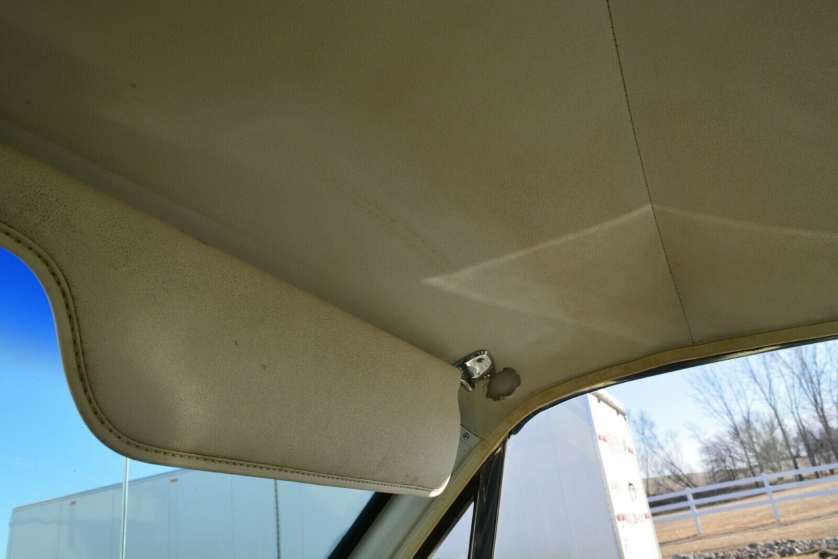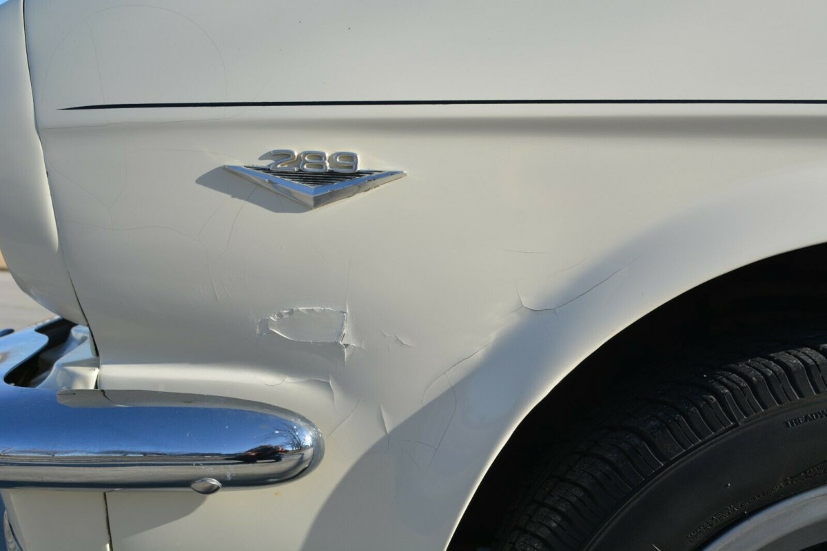 The Mustang’s white interior trim is said to be original, and it actually has survived quite well. There is a ter and a seam separation visible in the driver’s seat, but this looks like it could be repaired. There is also a hole in the headliner on the passenger side near the visor. I’m not sure whether this could be repaired satisfactorily, so a replacement might be on the cards. The rest of the trim, the carpet, and the console all appear to be quite nice. The original radio has been removed and an AM/FM radio/cassette player sits in its spot. However, the original radio is included in the sale.