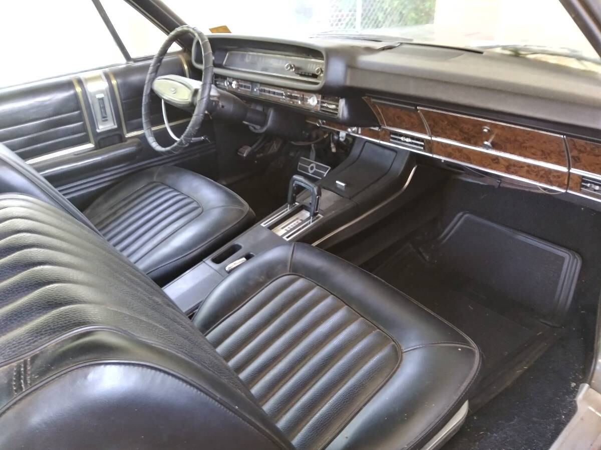 The photo of the Ford’s original black vinyl interior really surprised me. It looks very good and appears to just be needing a deep cleaning. This XL was ordered with the optional front bucket seats with a padded console and a cool-looking shifter. It was also ordered with factory SelectAire Air Conditioning. Two other photos shows a well-preserved back seat, headliner, and the black carpeting looks to be in good shape as well. I also really like the redesigned-for-’68 instrument panel and dash with the contrasting simulated woodgrain appliqué which Ford said, “added a more luxurious touch.”