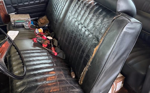 I would describe this Impala’s interior as serviceable, and lifting its appearance may not be as difficult or expensive as first impressions might suggest. Trimmed in Black vinyl, the front seatcover requires replacement due to splits and seam separations, and the interior also needs a new carpet set. However, what is visible of the back seat shows promise, the dash and pad are excellent, and there are no door trim issues visible in the listing’s limited images. The seller lists an aftermarket stereo as the only modification, but the factory radio is included if the buyer prefers a more “stock” look. The first owner ordered this Impala with air conditioning and a power front seat. Some engine bay A/C components are missing, suggesting a further financial outlay for the new owner as they source replacements.