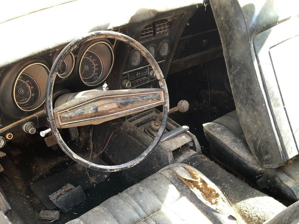 Getting the Mustang up and moving is the original 302-2V engine, backed by a 3-speed manual transmission. In a nod to comfort, the car is fitted with air conditioning. The owner says that the Mustang did run and drive when it was parked in a barn more than 30-years-ago, but it isn’t clear whether the engine even turns now. The sheer scale of the surface corrosion under the hood makes things look a bit on the doubtful side, so this has the potential to be a bit of a lucky dip on that front. Even if the car can be made to live and breathe once again, that 302 is definitely going to make the Mustang more of a comfortable cruiser than a muscle car.