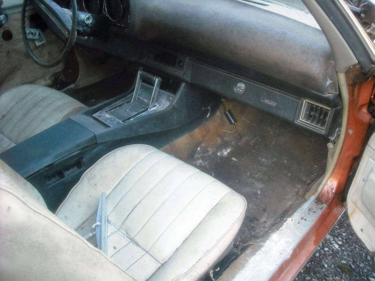 The owner says that the car will require a complete restoration, but it appears that you would be working from a pretty solid base. There is some surface corrosion on the underside of the car, but the floors themselves, the rockers, quarter panels, trunk pan, and trunk drop-offs all look very solid. There is no rust obvious around the rear window, and all of the glass is present and looks to be in good condition. The missing fender is a bit of a mystery, and the owner doesn’t enlighten us on whether it is included in the sale.