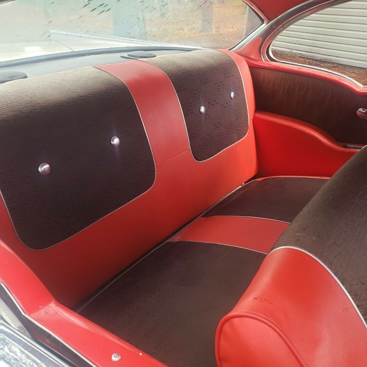 Very notable is that the seat upholstery looks not only original, but in very good conditon. The material in these was not durable compared with what is being fitted today – my 20 year old Audi with leather showed no wear, even on the driver’s seat, my 16 year old Toyota with “cloth” shows only dirt with 160,000 miles. My ’56 Chevy’s cloth seats were toast at 40,000 miles. My mother vetoed “seat covers” from the dealer, she said, “Why should we save the seats for the next owner? Let’s enjoy them ourselves.” So seat covers went on at 40,000 miles in the front, and I wore out two more sets before it died at 14 of rust. So, this looks like a good deal!