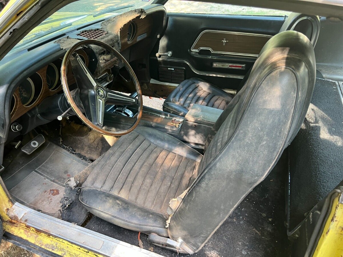 This Mustang would have cut a dashing figure in its prime, courtesy of the first owner’s decision to order it in desirable Competition Yellow. It recently emerged from forty-three years of barn storage as part of an estate sale, with the deceased former owner’s family believing that most of the paint is original. That is probably irrelevant now because the seller admits it is plagued with significant rust. What is visible externally is the tip of the iceberg because it has consumed most of the floors, the trunk pan, and some of the rails. The rear driver’s side floor is okay, but cutting everything away and fitting a complete set of pans would add little to the project costs if someone plans a restoration. The same is true externally, with only a few hanging panels worth saving. Most trim pieces look battered and bruised, but the glass seems okay.