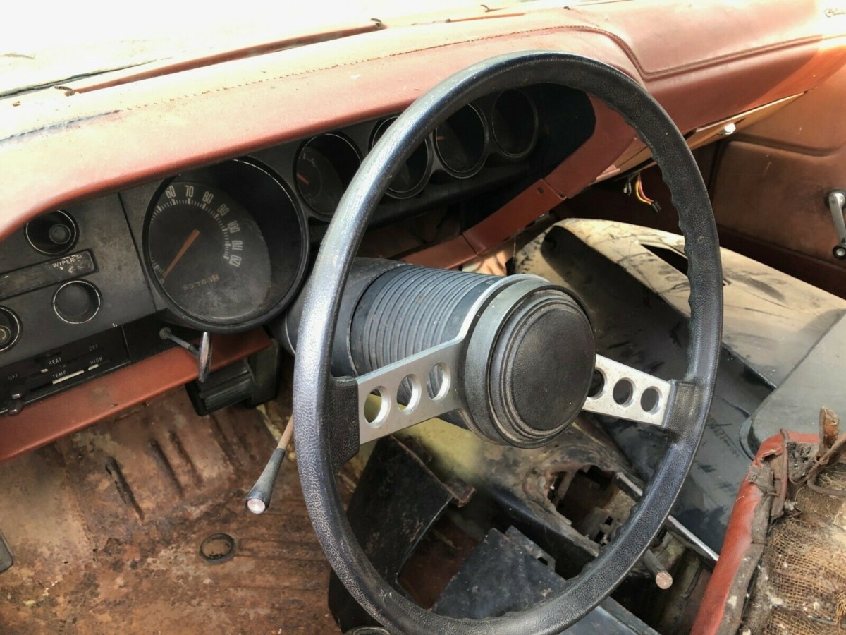 The Challenger was originally powered by a 340ci V8, backed by a TorqueFlite transmission. The original engine is still present, although it has been removed from the car, and its condition is unknown. The original rear end is also present, but the TorqueFlite has been replaced with a 4-speed manual transmission at some point. This is also included in the sale, so the next owner will face the choice of either fitting this, or attempting to source a date-correct TorqueFlite if a faithful restoration is to be attempted. It also isn’t clear what peripheral items such as the alternator, air cleaner, radiator, etc. are present, so the next owner might have to undertake a bit of shopping to locate the correct replacement parts.