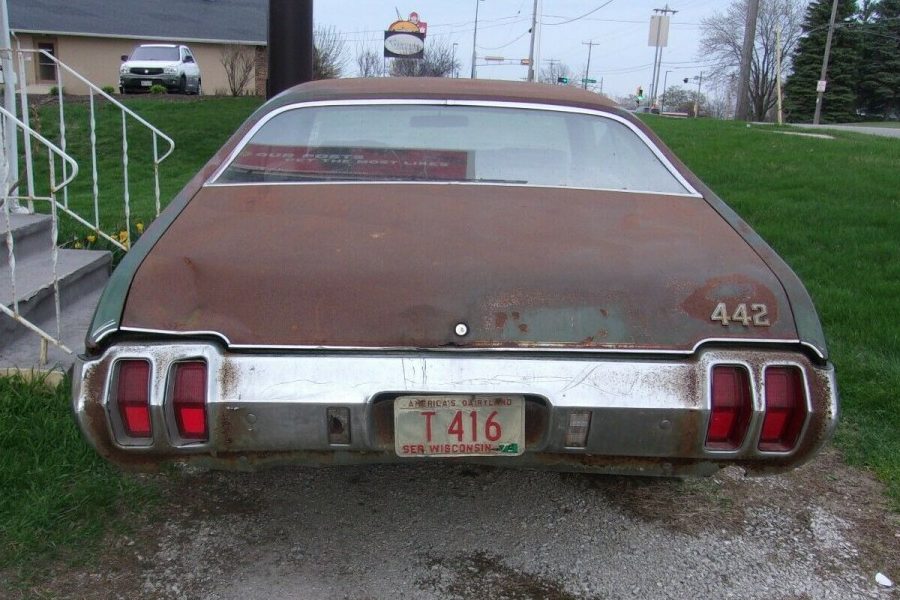 The interior of the 442 is completely original, with the exception of the carpet, which is new. It will require a full restoration, but the new owner will have a good base from which to start. The dash is original and unmolested, the pad is free of cracks, the floor console is still present, as is the rally pack gauge cluster, complete with the original Tic-Toc-Tach. The shopping list for the new owner will include seat covers for both the front and rear seats, along with a new headliner. It isn’t clear how healthy the rest of the trim is, but as I said, at least there’s a solid base from which to start.