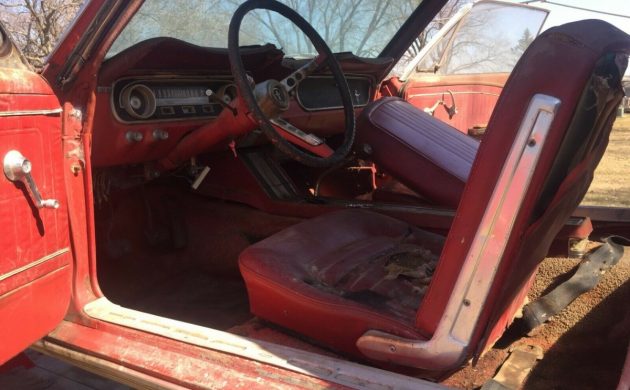 The owner has undertaken some investigation before listing this classic for sale and has been able to confirm that it rolled off the Kansas City production line on June 13th, 1964. The Rangoon Red Mustang was parked in 1985, and the owner believes that this might have happened due to a heater core failure. It has been sitting ever since, and it probably isn’t that surprising to learn that it does have a few rust problems. It appears that the floors are pretty bad, and these will require replacement. It isn’t clear what state the trunk pan is in, and there is no information on the state of the frame rails or torque box. One positive with this car is that the owner appears to be quite accommodating, and is willing to supply additional photos to potential buyers. He believes that the rear quarter panels might have been replaced at some point, and these are said to be in good condition. There are some small spots of rust visible in the lower sections of the body, but these should be able to be addressed with patches. All of the chrome is present, although some items will require restoration or replacement. The glass also looks pretty good, with no signs of any significant flaws.