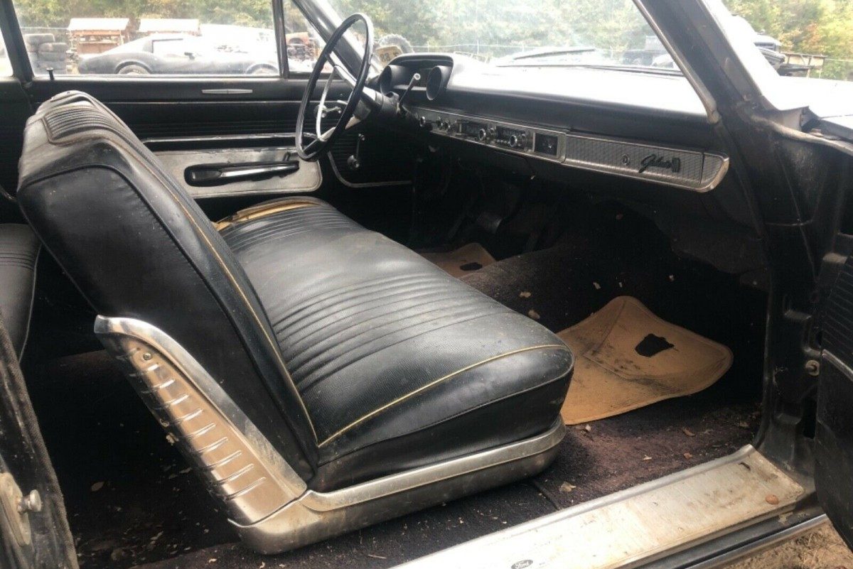 What a gem! Factory black on black is simply cool! The skirts add to that… This sweety pie needs someone to give it some love & bring it back to life. I had a ’64 Galaxie 500 XL convertible with a 390 4-speed… Great road car!