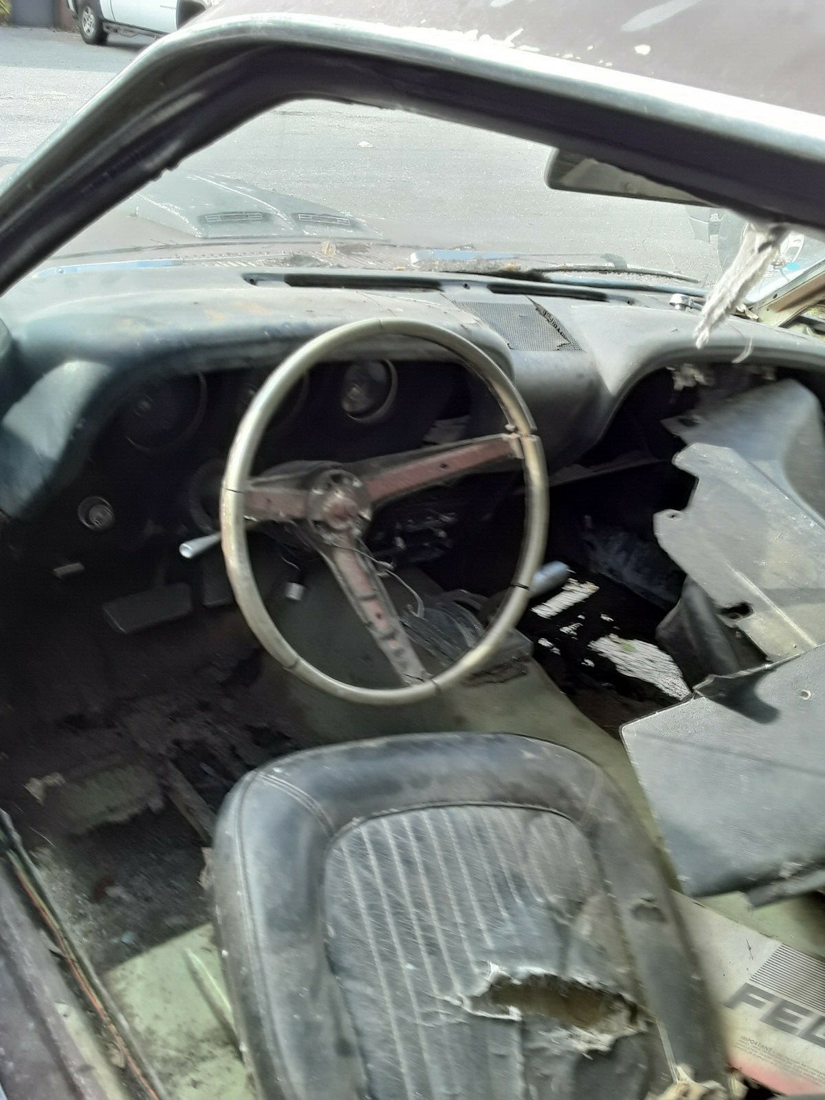 It would appear that the original Black interior trim is all present, with the exception of the carpet. Some items have been removed from the dash, but these things seem to be floating around inside the vehicle. It is going to require a full restoration, and just how this is tackled will depend on the next owner’s vision for the car. The seller does raise the idea of a Boss or Mach 1 clone, so that would certainly be something to consider.