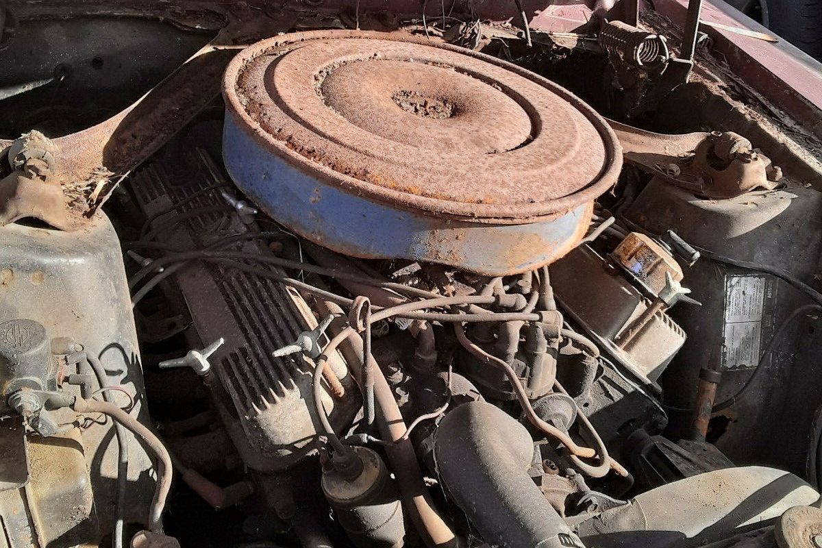 The Mustang originally started life finished in Wimbledon White, but has received a repaint in its current Royal Maroon at some point during its life. The fact that the paint is looking pretty ratty is the least of the car’s problems because there is rust that will need to be repaired before the car is fit to hit the road again. It has managed to find its way to the usual areas such as the torque boxes, floors, and the trunk pan. There are other areas that have been impacted, but the quarter panels and rockers look to be surprisingly solid. All of the exterior trim and chrome is present, but it has deteriorated to varying levels, and virtually all will be in need of restoration.