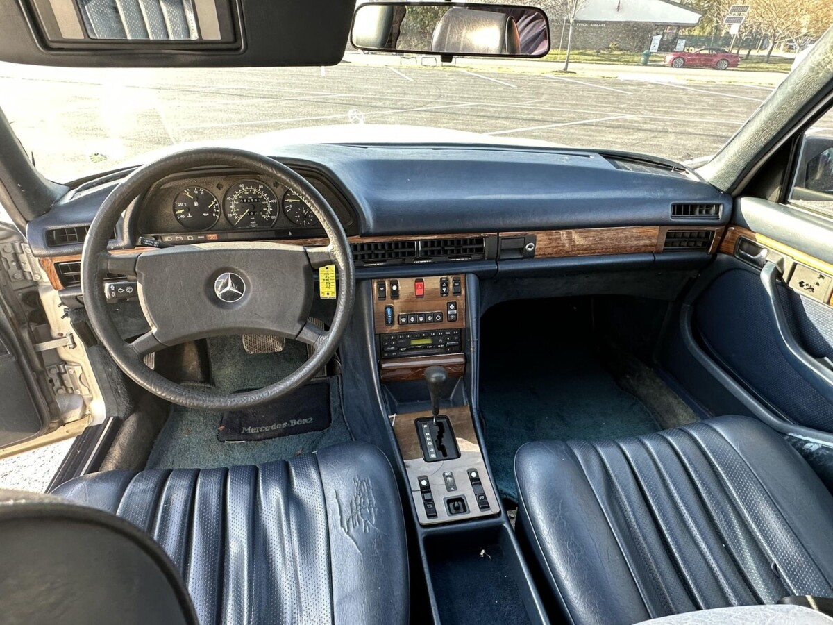 Having owned a W126 myself one thing that gives me pause is the apparent discoloration of the instrument bezel. It could be just my computer, but it appears to have some kind of metallic like or spackled look. None that I’ve ever seen in person, including my own were anything other than a matte black. Based on how long these things run, I also struggle with seating surfaces showing this much wear at the stated odometer reading. I could be wrong, but just a couple thoughts.