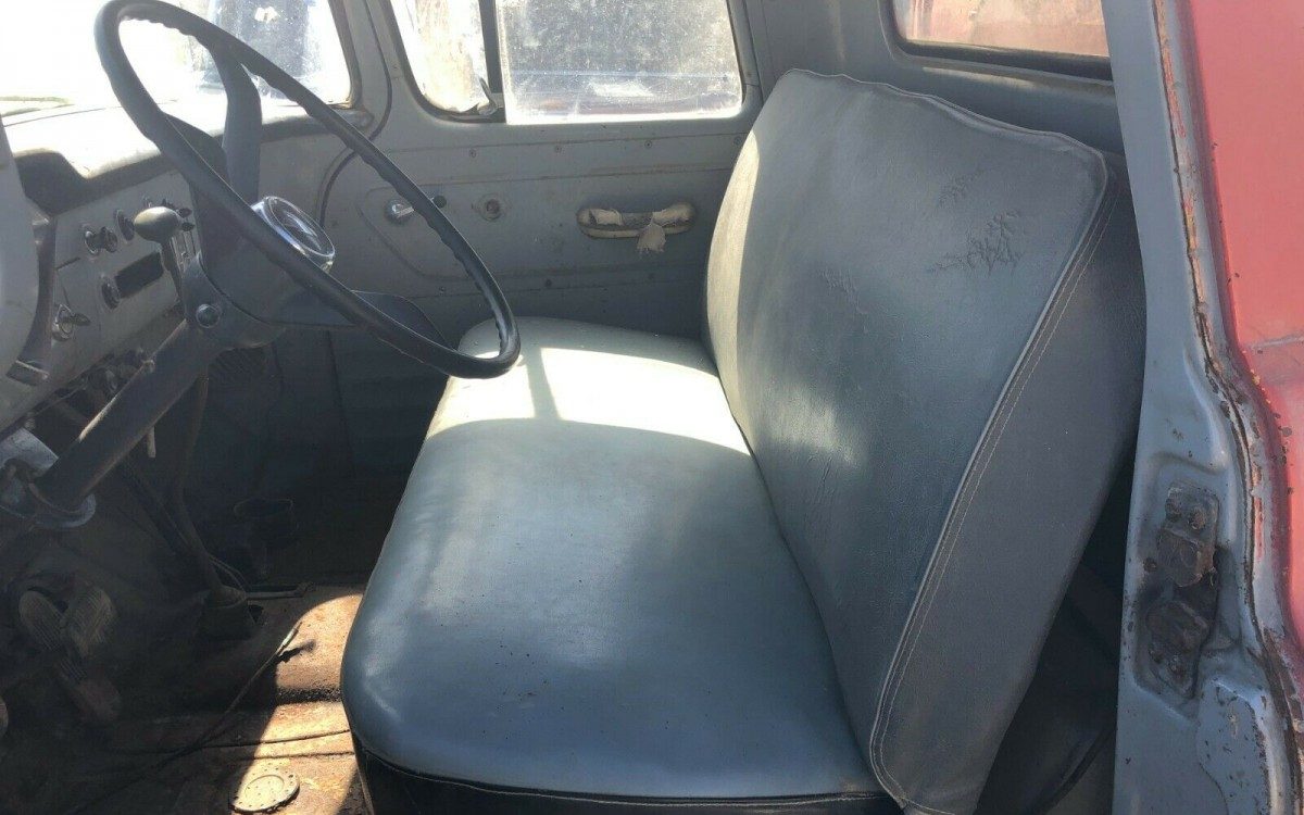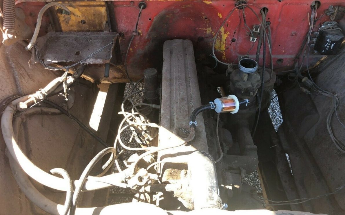 A 140 HP, 235 CI, in-line, six-cylinder engine provides the hauling power with a four-speed manual transmission. The seller adds, “Runs smooth. All gears shift. We put new radiator hoses on and she cools great. Will need the typical break work, belts, and gas tank cleaned. We just ran a gas can with a hose right to the fuel pump and it worked perfect. Runs and idles good”. The seller mentions that he has the air cleaner assembly.