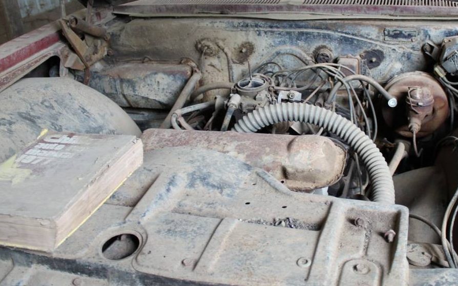 And while we’re on the matter of the interior, it’s difficult to get a detailed look at it due to all of the dust. The carpet has been removed and the floors seem OK, as does the under backseat panel, but the rest is pretty much anyone’s guess. A good cleaning will reveal wonders.