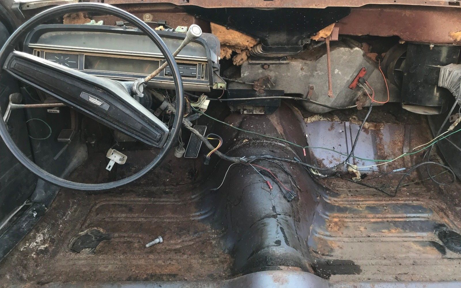 Glad it was taken down from eBay due to errors. “Rear bench seat” is there? Well lah-dee-dah! How about the huge chunk of dash missing and oh, thanks for the Mustang seats. Better than a milk crate I suppose for yard driving. Whatever put this bull down in 79 isn’t half as bad as the storage this car suffered in the years since. On the bright side, a parts car with bench and 3 spd column shift may actually be obtainable as they would have been the loss leader, en mass, for Ford in this period. 70.5 Falcon anyone?