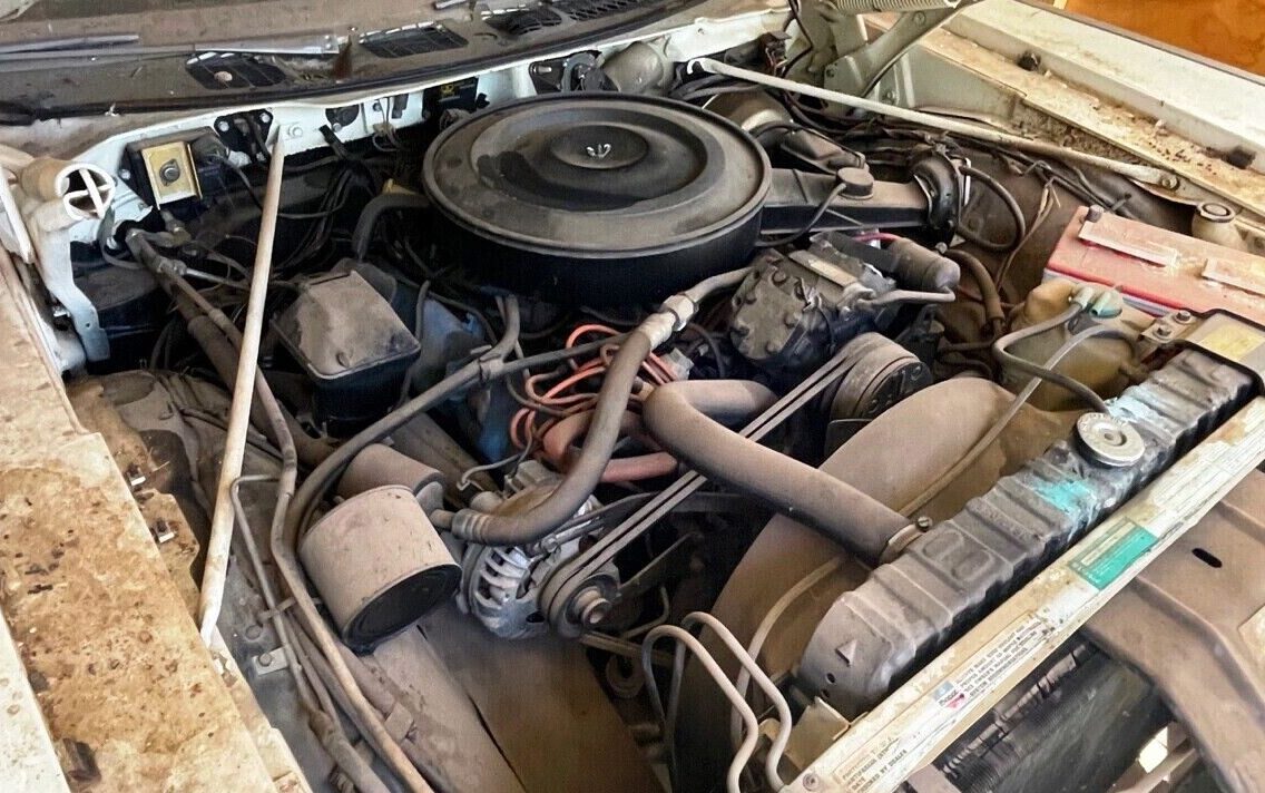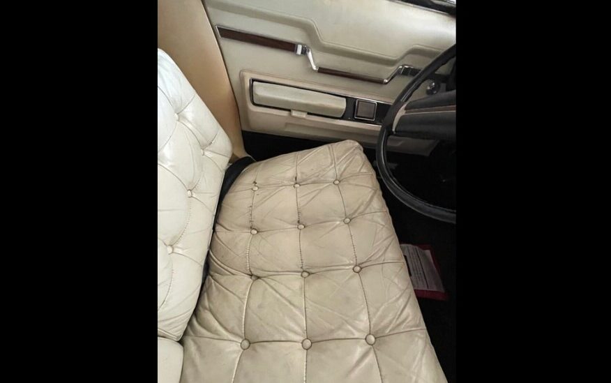 Pop the hood on a ’70s Imperial and you had better see a mighty 440 cid (7.2L) V8, though other engines became available in the next generation. Only the alternator shows signs of possible replacement. If the “parked in ’82” story holds water, you might find many original hoses and belts on this fine machine. The shocking whiteness of the firewall paint bodes well for this car’s quick return to camera-ready status.