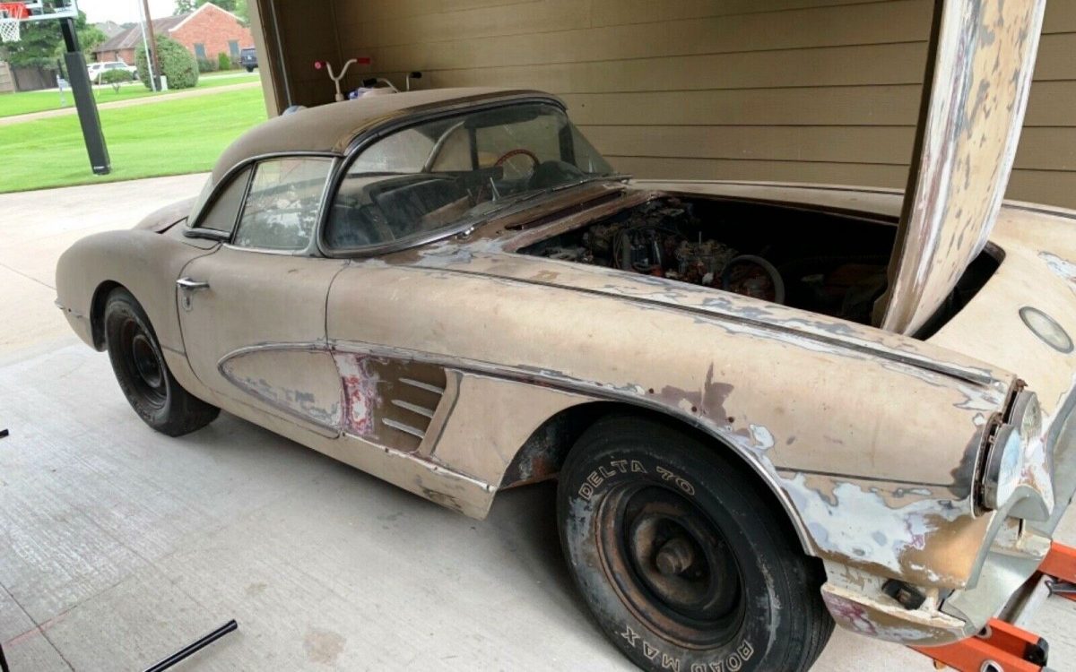 The history of the Corvette, “America’s Sports Car,” imparts a sense of potential every abandoned project car bearing the name. The novice might say with optimism, “Well it’s fiberglass so it can’t rust!” In fact the rust repair on the metal structure of a Corvette can be more daunting than other cars. All that aside, this 1960 Corvette Convertible in Gonzales, Louisiana seeks a new owner here on eBay awaiting what seems like a highly unlikely $31,000 opening bid. Finished examples are selling on eBay well under $50,000, but you can’t blame a person for trying.