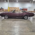 Oldsmobile’s mid-size ’69 lineup included the Cutlass Supreme, Cutlass S (two-door only), 442, basic Cutlass, and entry-level F85. Knocking out a total of 205K intermediates, the Cutlass S convertible, such as our subject car, accounted for 13,700 copies (6.7%) of that total. Our subject’s finish is code 67, Burgundy Mist Poly, an attractive, almost purple hue when new. In our case, the finish is pretty faded, and rust abounds. The seller states, “Trunk is very solid, floor is rusted out where body brace runs under the front seats. Has typical fender and quarter panel rust.” Fortunately, the bumpers seem straight and rust free and most of the stainless trim is still in place. Also, the Super-Stock wheels are a nice inclusion. But…also noted is, “frame is rusty; a good frame comes with the car.” OK, now we’re gettin’ into some trouble. Additionally, the top is shredded into almost non-existence, and the top frame’s cylinders are bad. The listing makes mention of a Maine transferable registration, and that geographic reference pretty well explains what happened to this car’s body/underside.