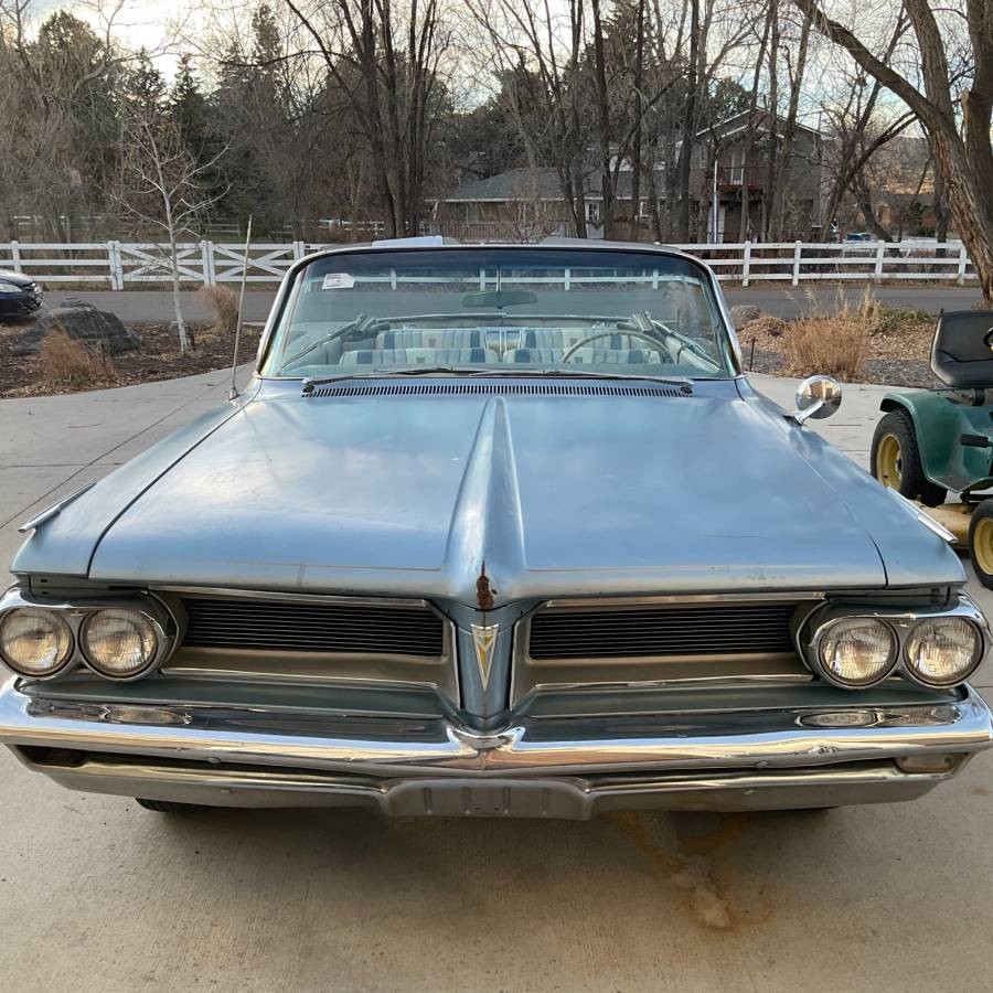Front grill appears to be from a ’62 Grand Prix, which was far more attractive than the stock Bonneville grill with the chrome horizontal bars.