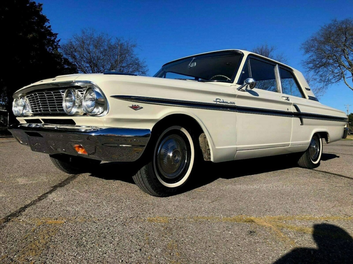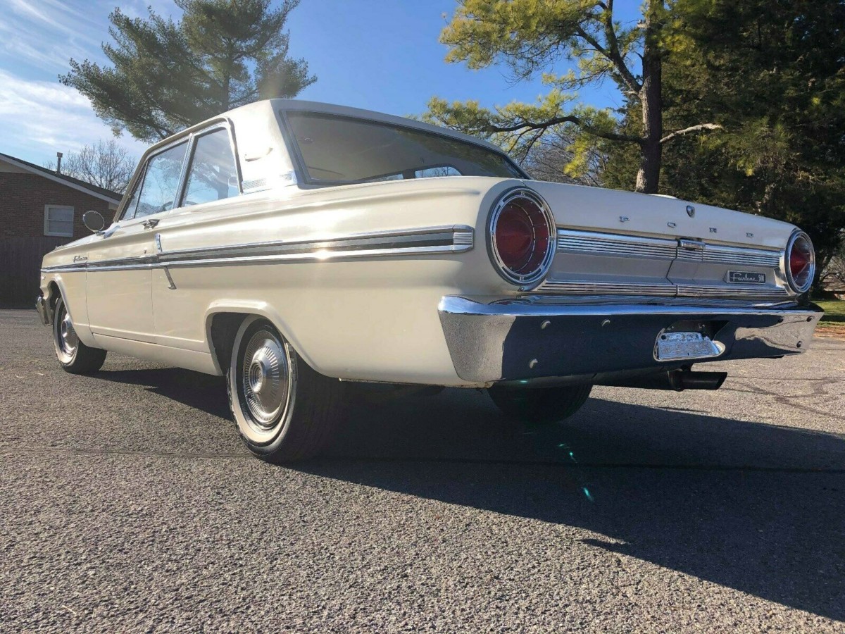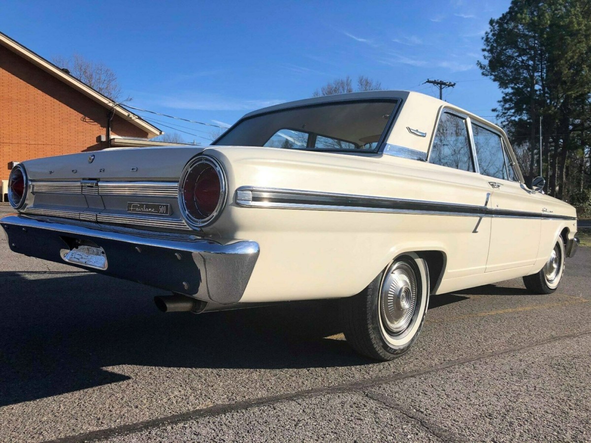 Ah yes, one of those cars you OWNED at one time but sold. I had a 64 Fairlane 500 Sport Coupe which was the Hardtop version of this car. Complete with a first year factory 289 in Guardsman Blue with a white vinyl top. This was back in 1996 when the internet was not really going much and finding parts was not as easy as it is today. Mine had a LEAKY filler neck on the gas tank. Fill it up too much and when ever you hit the gas, gasoline would pour out from the middle of the filler neck and splash out from under the car. Also it had a bad trunk gasket so the edges of the trunk pan were rotting. The interior was great with black and white seats and door cards plus a black dash. The front seats were low back buckets. Oh and yes it was from the GOOD OLD DAYS of collector car prices, $1400 for a nice running and driving car.