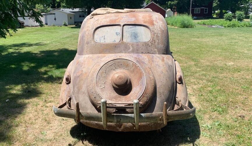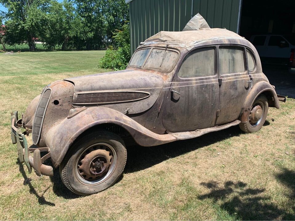 Definitely not worth a proper restoration. Just find an old 6cyl. Manual Z3 and start swapping parts. If the headlights are not in the back seat then snap up a set of’37 ‘38 Chevrolet units, make them work. Finish the interior better than stock and give it sedate two tone paint. Motor on in something way different and even cool.