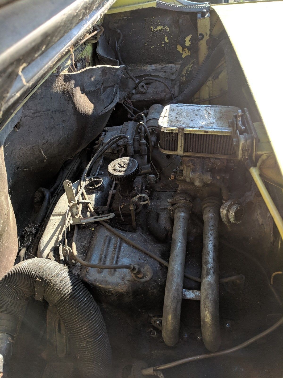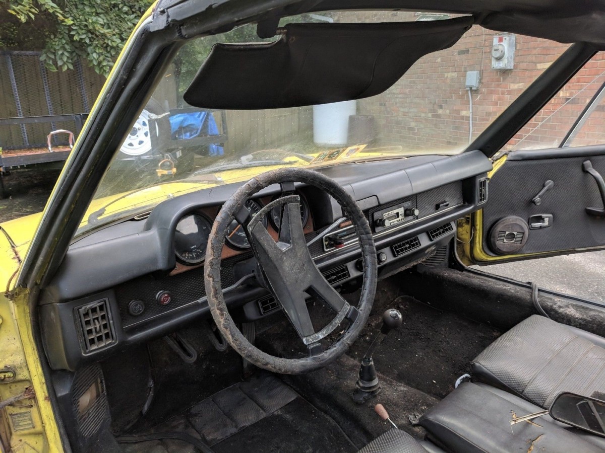 The paint is assumed original, based on the matching yellow color inside the door jambs, but it could have been re-done at some point. Of course, given where we see the heaviest damage, it begs the question if there was an engine fire at some point – perhaps what prompted the rebuild? The seller doesn’t say much about rust, but 914s weren’t exactly immune from the tin worm if left in less-than-ideal storage conditions.