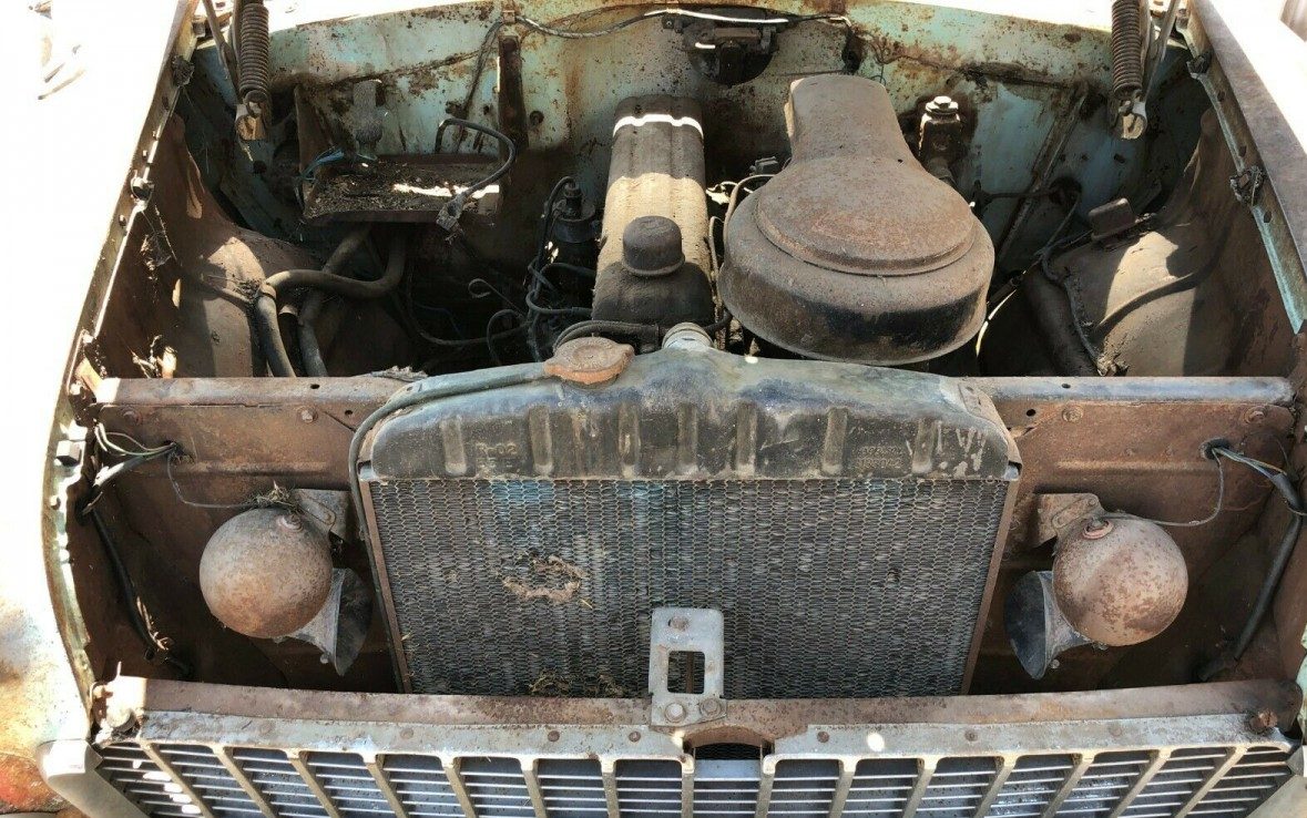The (presumably original) inline six-cylinder turns over but does not run. The six leaves room to climb into the engine compartment for maintenance tasks. The bay can also accommodate just about any engine you like, from the lightweight modern LS V8 to the Two-Lane Blacktop style 454 cid (7.4L) big block. Dual softball-sized horns promise to peel the paint off that pesky green-light-ignoring Prius.