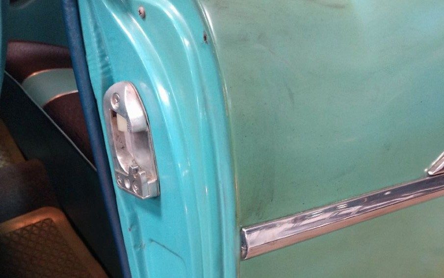 Here you can see the stark contrast between the exterior color and the door frame. I fear a cut and buff will probably not be enough to bring back the luster of the body, but since the car has apparently been repainted once there’s really no problem with doing it again. In fact, if the buyer chooses the same paint color, the prep work won’t be too bad and the car can probably be re-sprayed with only minor disassembly. If this was your car, would you repaint it?