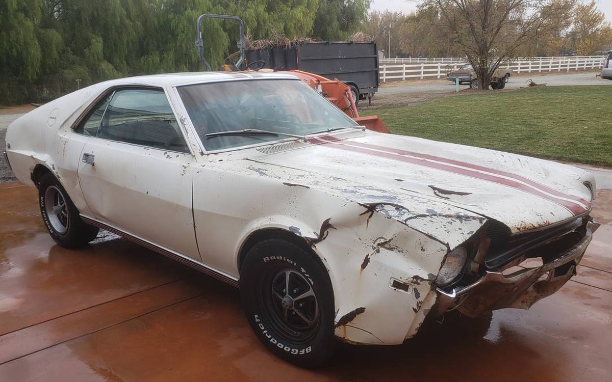 Lovely AMX. Hope someone fixes it up. The pic of the drivers side is a bit worrying though…. front wheel looks like it’s pushed back and back wheel pushed forward a bit? Might be more going on than meets the eye there.