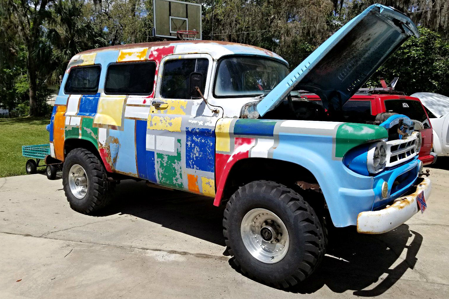I like the truck. These are getting to be quite desirable to some of us. I would’ve preferred a more original-type Poly-head engine but the 340 sure won’t let it lag behind. I’d definitely fix the rust and then put the Partridge Family back in the annals of television history. I might add that if I came across the bus they used, it would change colors fast….