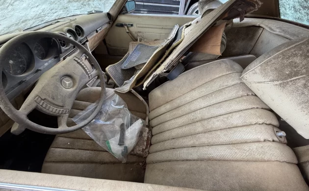I’d suggest that this Benz is an inbetweeney, it’s going to take a lot of time, effort, and $$$ to return it to proper, esteemed M-B form, but it seems too good to just part it out. I’d say that the biggest unknown here is that 4.5-liter V8 engine – that’s going to be a coin flip. What’s your thought, a reasonable restoration candidate or just part it out?