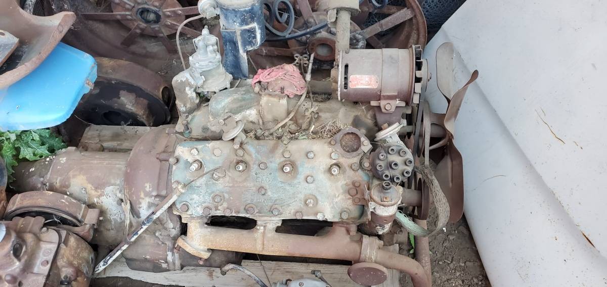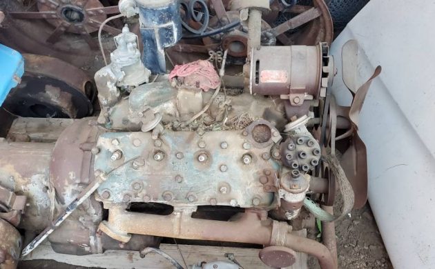 Yes, there is a 125 HP, 255 CI flathead V8 engine, married to a Merc-O-Matic automatic transmission present, but it’s not under the hood where it belongs. It looks like it’s missing some parts, too, so that’s definitely a matter to consider.