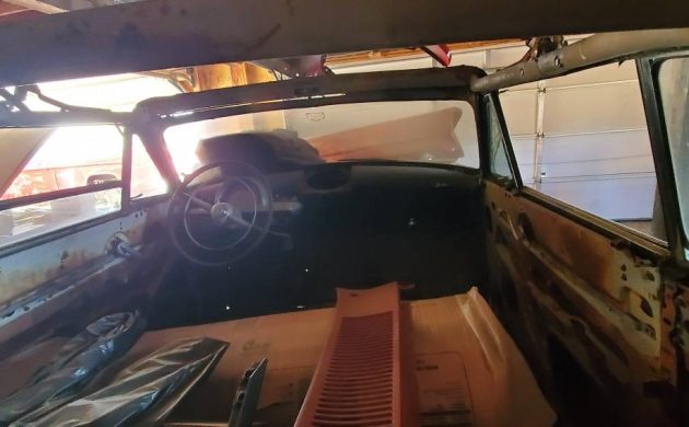 The interior is not very visible, so there’s no 411 on the seats/frames, door/upholstery panels, dash, instrument panel, etc. There is one floor pan image included, but I can’t tell if it’s from under the rear seat or up against the rear seat from a trunk view perspective. The seller does mention the inclusion of power windows.