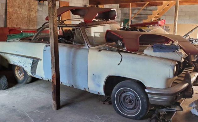 While not exactly rare with 5,200 units produced, a ’52 Monterey convertible could be called uncommon – especially today, 72 years after the fact. Mercury offered two trim levels in ’52, the Custom and the Monterey. Montereys were available as two-door hardtops and convertibles as well as four-door sedans. Faux-wood sided six and eight-passenger station wagons were also offered, and both wore a Monterey badge. The images of our subject aren’t very clear or comprehensive – there’s too much detritus hiding the very aspects that one would want to pictorially review – this is no way to seriously promote a sale candidate. Regardless, what can be seen of the exterior seems sound. The seller adds, “Pretty solid car for its age, been stored inside.” Obviously, the power-folding top fabric is missing, and the seller makes mention of some powder-coated parts that are included in the sale.