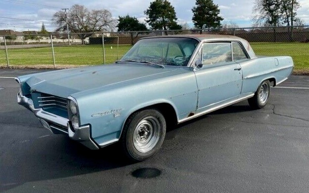Pontiac introduced the 2+2 to its model range in 1964 as a trim option for its Catalina model. It was offered in Convertible and 2-door Hardtop Coupe form, with our feature car being the latter. I typically defer to our readers when it comes to the subject of whether any classic is the real deal. That is because I am one person, and you represent an almost limitless resource of knowledge and experience. However, this 2+2 leaves no questions regarding its authenticity, courtesy of the included original Window Sticker and Ident-O-Plate. The seller indicates it has never undergone restoration, suggesting that the Yorktown Blue paint cloaking its panels is original. It shows its age, with significant wear-through and surface corrosion. The panels also sport dings and dents, and a cosmetic restoration would seem to be the starting point for returning this gem to its former glory. How involved and complex that might be will depend on what an in-person inspection might reveal. There is visible penetrating rust in the lower front fenders, and the seller doesn’t state whether further issues are lurking below the surface. Some trim pieces are missing, but the glass looks okay. The wheels are an aftermarket addition, but sourcing the correct items shouldn’t pose a challenge.
