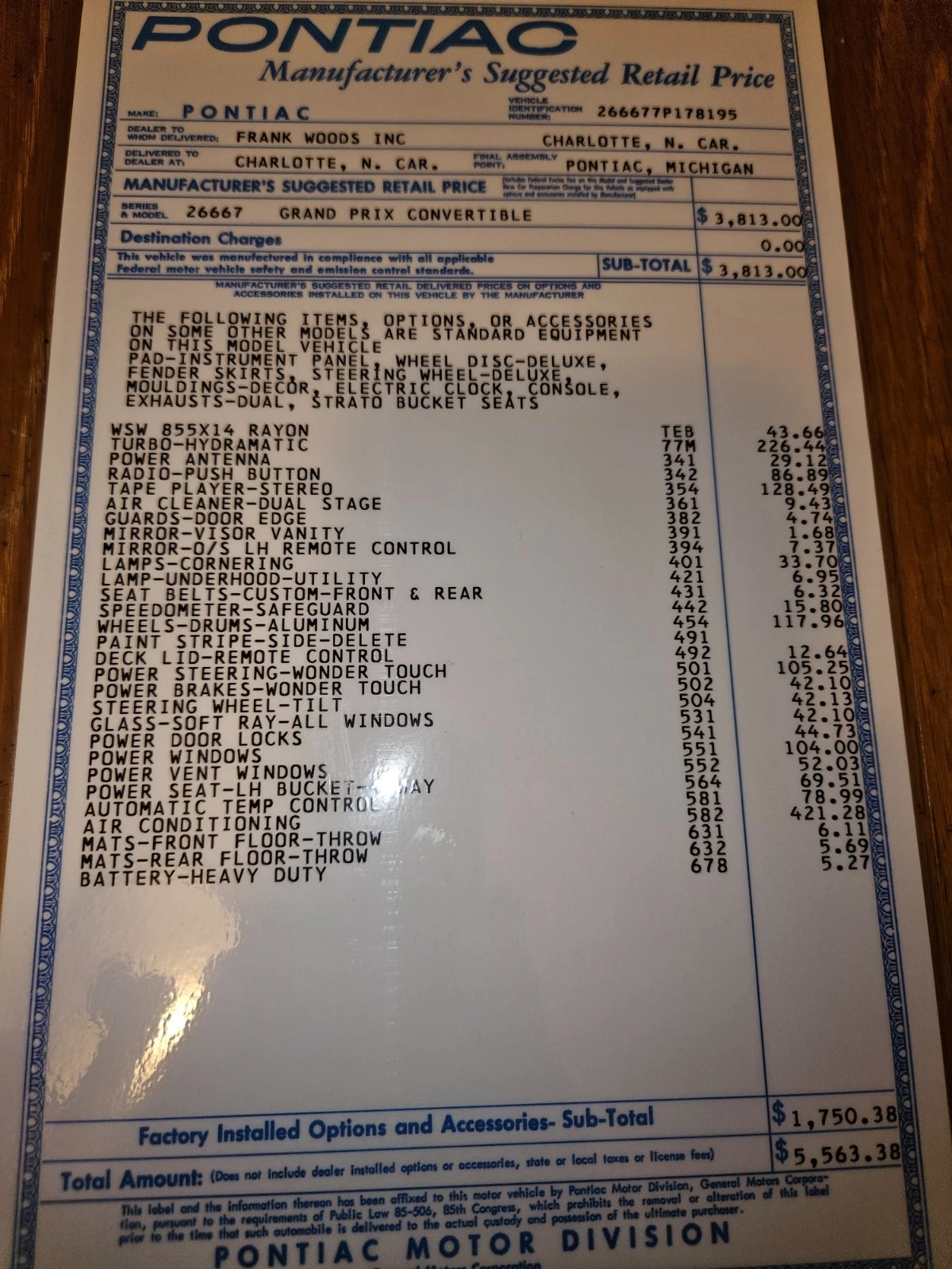 A point worth noting is how loaded with options the seller states his main Grand Prix is equipped with, featuring more than he’s ever seen and enough to make him wonder if this was some sort of promotional car. Some of these are power windows, including the vent glass, a power driver’s bucket seat, a power antenna and trunk release, an 8-Track tape player, plus several others. Much of the interior will require attention, but at least you’ll eventually have plenty of fun gadgets to play with, once this one’s up and going again.