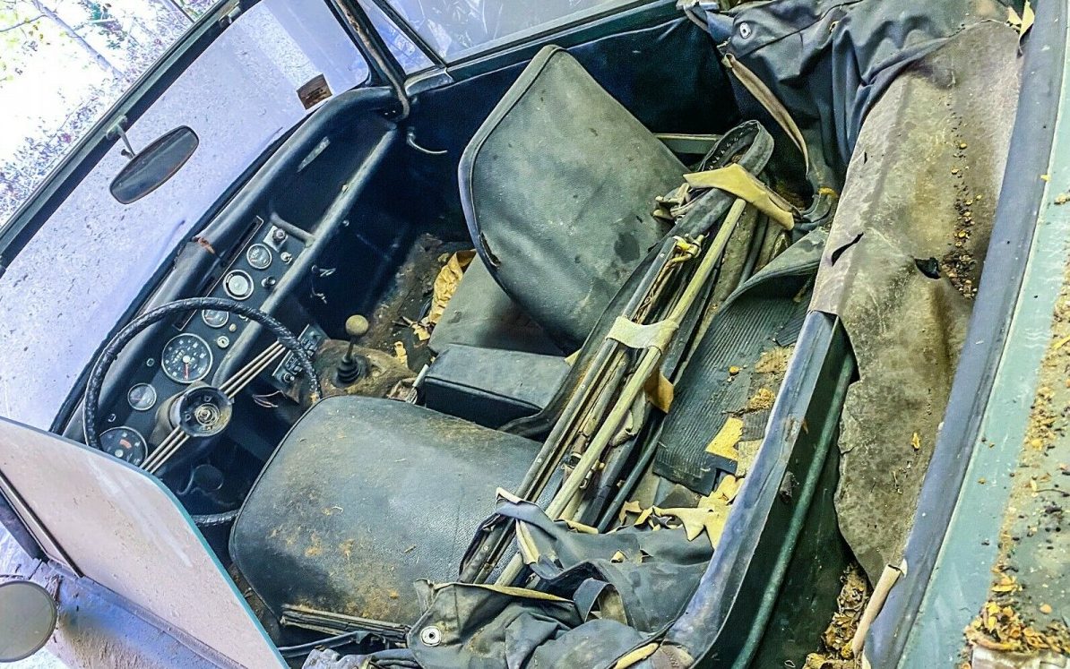 The 93 HP, 1,725 CC, in-line four-cylinder engine is listed as a non-runner and there are no accompanying images so there’s no way to tell if the parts reaper has paid it a visit. The interior, however, is another matter and it is pictorially well presented. In a nutshell, it’s going to need a lot of work. The folding top is falling apart, the floors are showing some kind of dreck spread about – no idea about their integrity, the dash pad is split, the steering column/wheel is missing some trim or parts but the seats are not revealed well enough to make a determination as to their condition. The instrument cluster, however, looks complete and what can be spied of the gauges show instruments with clear faces as well as no sign of missing switchgear – a common occurrence with neglected British sports cars.