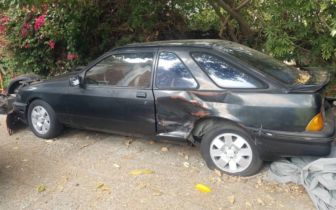 Based on the EU Ford Sierra, which was common for the rear arches to need replacing but this is definitely the worst case I’ve ever seen (and my Dad was a Ford Bodyshop worker) just try to find a replacement shell as the 2 door is hard enough to find never mind the XR4i (EU version) also where’s the bi-plane rear spoiler?? Without it, its nothing imo